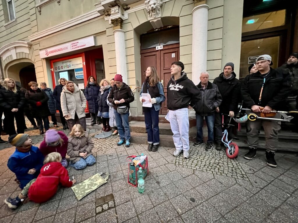 Das Bild vieler junger Menschen, Familien und Kinder, die gemeinsam innehielten, prägte diesen Abend besonders. Die Initiative „Bad Freienwalde ist bunt“ würdigte das Engagement aller Mitwirkenden: „Es macht Mut zu sehen, dass Jugendliche aus Bad Freienwalde und Eberswalde sowie viele Bürgerinnen und Bürgern der Stadt gemeinsam Haltung zeigen – für Erinnerung, Mitgefühl und Zivilcourage. Sie geben der Geschichte eine Stimme und tragen Verantwortung für die Zukunft.“