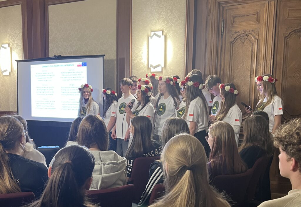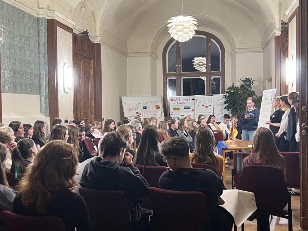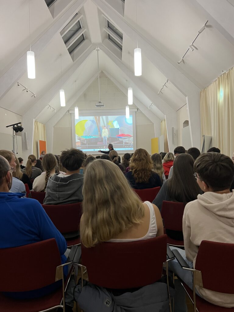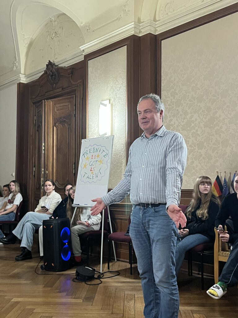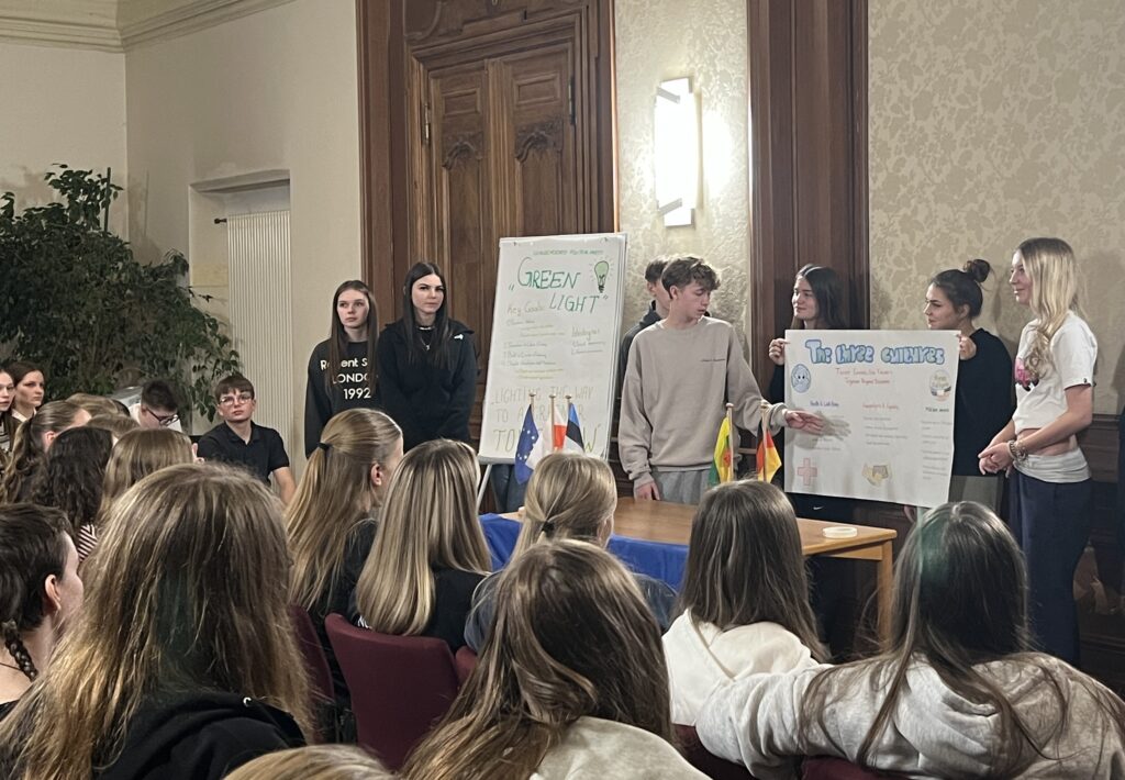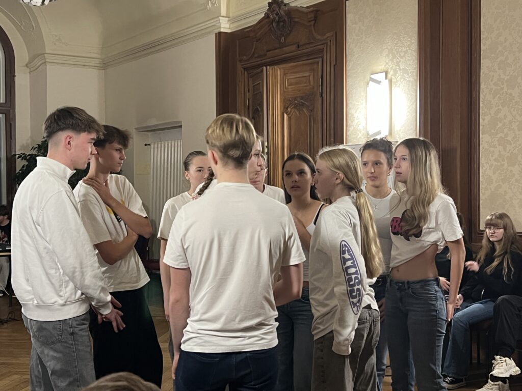 Im Dezember 2025 reisten, wie auch schon in den Jahren zuvor, Schülerinnen und Schüler der 10. Klasse zum Erasmus Europa Creativ Projekt nach Trebnitz. Schloss Trebnitz ist eine deutsch-polnische Begegnungsstätte und richtet das Erasmus Projekt einmal jährlich aus. Sieben Tage lang lernten sich Schülerinnen und Schüler aus Deutschland, Polen, Estland und Lettland kennen und tauschten sich aus. In kreativen Workshops wie Tanz, Theater, Film, Comiczeichnung und Musik arbeiteten, lernten, diskutierten, lachten und weinten die mehr als 70 Jugendlichen nicht nur miteinander, sondern wuchsen auch über sich hinaus. Auf der spektakulären Abendveranstaltung am vorletzten Tag präsentierten die Workshopgruppen ihre spannenden und anspruchsvollen Projekte.
